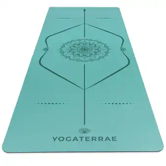 Nu in promo bij Decathlon: Wijnoogst Groen yogamat in PU en rubber met MANDALA + LICHAAMSLIJNEN✅ Deze aanbieding is geldig van 10-12 t/m 15-01.