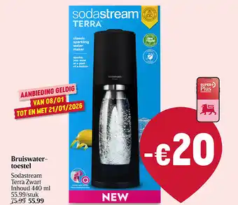 Deze promotie is bij diverse winkels in de aanbieding, bekijk alle producten om te zien welke Bruiswatertoestel het goedkoopst is.Als u wilt weten of dit product meer korting heeft in een andere winkel kan u vergelijken onder de categorie 'Supermarkt'. Wellicht vindt u deze aanbiedingen ook interessant: Bruiswatertoestel Gaia, Bruiswatertoestel SKC01WHM & BRUISWATERTOESTEL “TERRA BLACK”.