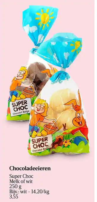 Deze promotie is bij diverse winkels in de aanbieding, bekijk alle producten om te zien welke Chocoladeeieren het goedkoopst is.Als u wilt weten of dit product meer korting heeft in een andere winkel kan u vergelijken onder de categorie 'Supermarkt'. Wellicht vindt u deze aanbiedingen ook interessant: Super Choc Chocoladeeieren, aanbieding 2 & aanbieding 3.