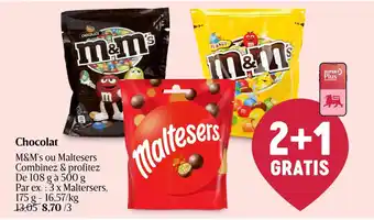 Chocolat M&M's ou Maltesers 175 g 2+1 GRATIS