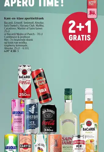 Bacardi, Eristoff, Smirnoff, Absolut, Jack Daniel's, Havana Club, Malibu, Cazadores, Martini of Saint James of Bacardi Mojito of Punch - 70 cl Combineer & profiteer Bijv.: 3 x bruisende drank op basis van wodka, raspberry lemonade, Absolut,