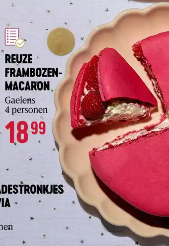 Nu in promo bij Delhaize: REUZE FRAMBOZENMACARON✅ Deze aanbieding is geldig van 13-11 t/m 31-12.