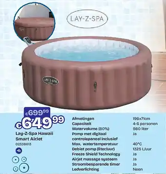 Verwachte Lay-Z-Spa Hawaii Smart AirJet aanbieding bij Dreamland