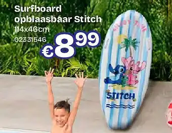 Surfboard opblaasbaar Stitch 114x46cm korting bij Dreamland