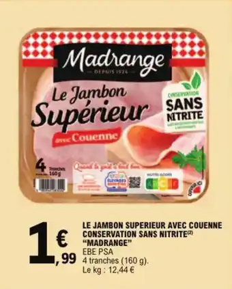 Nu in promo bij E.Leclerc: Le jambon superieur avec couenne conservation sans nitrite madrange✅ Deze aanbieding is geldig van 30-12 t/m 10-01.