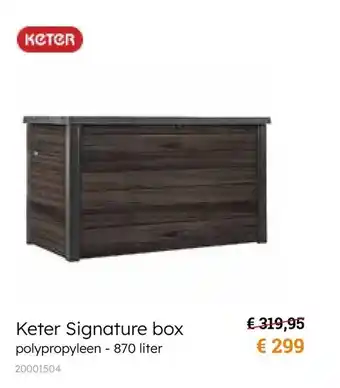 Deze promotie is bij diverse winkels in de aanbieding, bekijk alle producten om te zien welke Keter Signature box het goedkoopst is.Als u wilt weten of dit product meer korting heeft in een andere winkel kan u vergelijken onder de categorie 'Tuin en dier'. Wellicht vindt u deze aanbiedingen ook interessant: Keter Signature box, Keter Signature 759 & Keter Signature 7511.