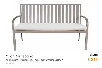 Deze promotie is bij diverse winkels in de aanbieding, bekijk alle producten om te zien welke Milan 3-zitsbank het goedkoopst is.Als u wilt weten of dit product meer korting heeft in een andere winkel kan u vergelijken onder de categorie 'Tuin en dier'. Wellicht vindt u deze aanbiedingen ook interessant: Vetto 2-zitsbank, Milan 3 zits bank & Carport milan q-line.