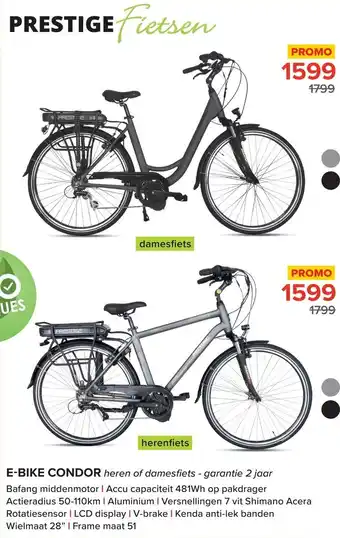 Deze promotie is bij diverse winkels in de aanbieding, bekijk alle producten om te zien welke E-bike condor het goedkoopst is.Als u wilt weten of dit product meer korting heeft in een andere winkel kan u vergelijken onder de categorie 'Bouwen en verbouwen'. Wellicht vindt u deze aanbiedingen ook interessant: E-bike longtail, E-bike navigator & Torpado e-bike nexus.