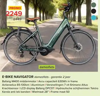 Deze promotie is bij diverse winkels in de aanbieding, bekijk alle producten om te zien welke E-bike navigator het goedkoopst is.Als u wilt weten of dit product meer korting heeft in een andere winkel kan u vergelijken onder de categorie 'Bouwen en verbouwen'. Wellicht vindt u deze aanbiedingen ook interessant: E-bike condor, E-bike longtail & Torpado e-bike nexus.