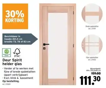 Nu in promo bij GAMMA: Deur Spirit helder glas✅ Deze aanbieding is geldig van 17-12 t/m 6-01.