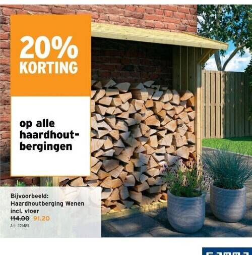 | Haardhoutberging wenen incl. vloer | GAMMA | € 114,00 | € 91,20 | € 22,80 Korting | 15 november 2023 | 21 november 2023 | |