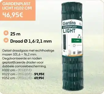 Gegalvaniseerde en nadien geplastificeerde draden voor dubbele corrosiebescherming. H102 cm 055107/D
