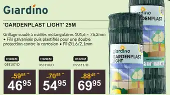 HandyHome heeft een ruim assortiment naast de Gardenplast Light, houd elke week de HandyHome folder in de gaten om de beste aanbiedingen en promoties te vinden. Naast Gardenplast Light in promotie kan u ook volgende aanbiedingen vinden: Giardino Gardenplast Light zwart of Antraciet, Giardino Gardenplast Classic zwart & Giardino Grillage de Jardin Gardenplast Classic.