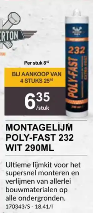 Montagelijm Poly Fast 232 Wit promo en online acties bij HandyHome