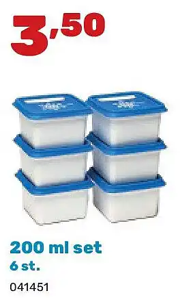 Bekijk en vergelijk de bovenstaande aanbiedingen om te zien of 200 ml set 6 st binnenkort opnieuw als actie verschijnt. Wij volgen alle prijzen en promoties op, zodat u uw aankopen voordelig kan plannen. Door 200 ml set 6 st aanbiedingen met elkaar te vergelijken, weet u snel of het loont om nog even te wachten voor een lagere prijs. Kom regelmatig terug voor de nieuwste promo-updates.Veelgestelde vragen over 200 ml set 6 st