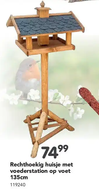 Nu in promo bij Happyland: Rechthoekig huisje met voederstation op voet 135cm✅ Deze aanbieding is geldig van 19-01 t/m 21-02.
