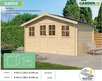 Hubo heeft een ruim assortiment naast de Gardenas Davos, houd elke week de Hubo magazine in de gaten om de beste aanbiedingen en promoties te vinden. Naast Gardenas Davos in promotie kan u ook volgende aanbiedingen vinden: Gardenas Davos houten tuinhuis 415x295x248 cm blokhut anticondensbescherming, Bank davos & Gardenas Kopenhagen.