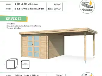 De prijs van Gardenas Ervik II tuinhuis 295x295x219 cm hout kan u vinden bovenaan de pagina, waarbij ook de geldigheidsdata worden genoemd. Daarnaast is de prijs ook te vinden in de huidige Hubo folder of op de website van Hubo. U bent verzekerd van producten aan de laagste prijs bij Hubo als u artikelen in promotie koopt.