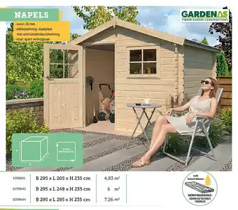 Gardenas Napels L houten tuinhuis 295x248x235 cm blokhut anticondensbescherming aanbieding bij Hubo