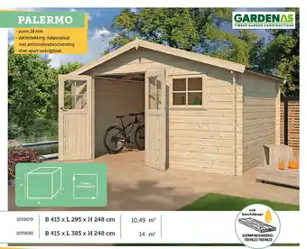 Gardenas Palermo L houten tuinhuis 415x295x248 cm blokhut anticondensbescherming promo en online acties bij Hubo