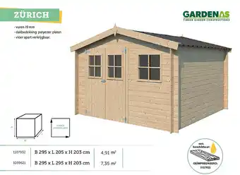 Deze promotie is bij diverse winkels in de aanbieding, bekijk alle producten om te zien welke Gardenas Zurich houten tuinhuis 295x205 cm onbehandeld het goedkoopst is.Als u wilt weten of dit product meer korting heeft in een andere winkel kan u vergelijken onder de categorie 'Bouwen en verbouwen'. Wellicht vindt u deze aanbiedingen ook interessant: Gardenas Zürich, Gardenas Innsbruck houten tuinhuis 205x205x203,5 cm blokhut & Gardenas Alaska houten tuinhuis 325x265x220 cm blokhut.