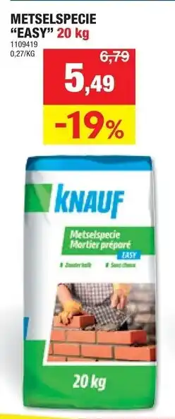 Nu in promo bij Hubo: Knauf Metselspecie Easy✅ Deze aanbieding is geldig van 25-02 t/m 8-03.