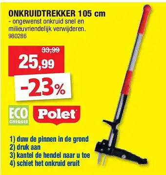 Het is goed dat u tussen de promoties zoekt naar het goedkoopste product dat u nodig hebt! Als u wil weten of ONKRUIDTREKKER 105 cm de hoogste korting heeft bij Hubo kan u vergelijken op de Topic pagina of met andere winkels.