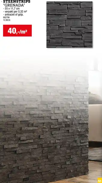 Deze promotie is bij diverse winkels in de aanbieding, bekijk alle producten om te zien welke Steenstrips "grenada" het goedkoopst is.Als u wilt weten of dit product meer korting heeft in een andere winkel kan u vergelijken onder de categorie 'Bouwen en verbouwen'. Wellicht vindt u deze aanbiedingen ook interessant: Steenstrips "country", STEENSTRIPS "NEPAL" & Vliesbehang.