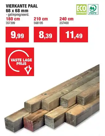 Verwachte VIERKANTE PAAL 68 x 68 mm aanbieding bij Hubo
