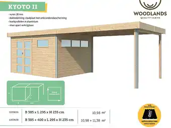 Nu in promo bij Hubo: Woodlands Kyoto II tuinhuis 385x295x235 cm hout anticondensbescherming + extensie 400cm✅ Deze aanbieding is geldig van 25-02 t/m 30-06.