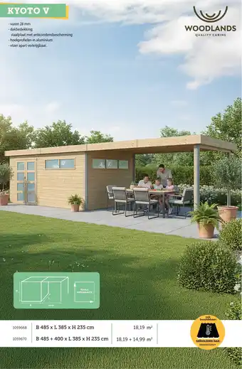 Hubo heeft een ruim assortiment naast de WoodLands Kyoto V, houd elke week de Hubo magazine in de gaten om de beste aanbiedingen en promoties te vinden. Naast WoodLands Kyoto V in promotie kan u ook volgende aanbiedingen vinden: Woodlands Kyoto V tuinhuis 485x385x235 cm hout anticondensbescherming, WoodLands Kyoto ll & WoodLands Kyoto lll.