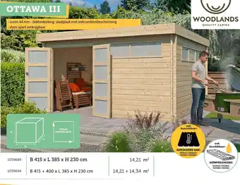 Deze promotie is bij diverse winkels in de aanbieding, bekijk alle producten om te zien welke WoodLands Ottawa lll het goedkoopst is.Als u wilt weten of dit product meer korting heeft in een andere winkel kan u vergelijken onder de categorie 'Bouwen en verbouwen'. Wellicht vindt u deze aanbiedingen ook interessant: WoodLands Kyoto lll, WoodLands Ottawa ll & WoodLands Ottawa l.