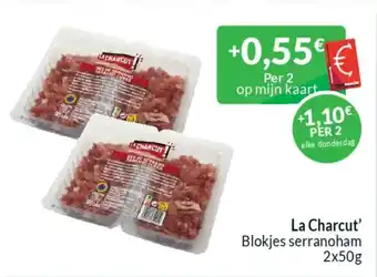 Nu in promo bij Intermarché: La Charcut' Blokjes serranoham✅ Deze aanbieding is geldig van 1-04 t/m 30-04.