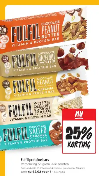 De Fulfil proteïne bars is momenteel in aanbieding bij Jumbo. Op deze pagina vindt u alle informatie over de actuele prijs, promotievoorwaarden en geldigheidsperiode. U kan ook andere acties en vergelijkbare aanbiedingen bekijken, zodat u steeds de voordeligste keuze maakt. De promotie loopt van 04-02-2026 tot en met 10-02-2026. Is de actie afgelopen? Geen probleem – alternatieve Fulfil proteïne bars promo’s blijven beschikbaar. U kan de productcategorie volgen om automatisch verwittigd te worden wanneer Fulfil proteïne bars opnieuw in aanbieding komt.Veelgestelde vragen over Fulfil proteïne bars