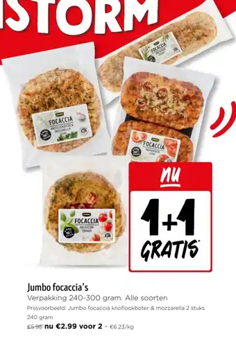 Jumbo focaccia's 1+1 gratis