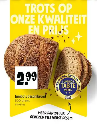 Jumbo's desembrood 600 gram korting bij Jumbo