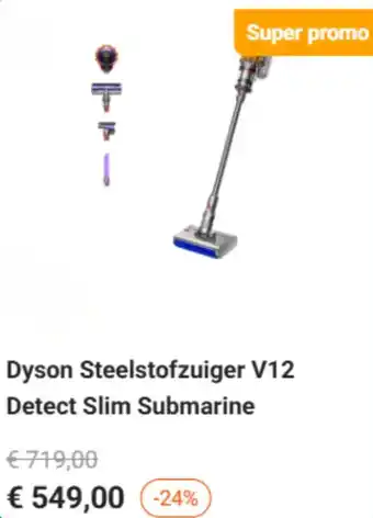 Nu in promo bij Krëfel: Dyson Steelstofzuiger V12 Detect Slim Submarine✅ Deze aanbieding is geldig van 3-02 t/m 28-02.
