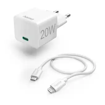 Snellader met oplaadkabel Lightning, mini-oplader, PD, 20 W, 1m, wit promo en online acties bij Krëfel