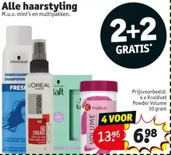 Kruidvat heeft een ruim assortiment naast de Alle haarstyling, houd elke week de Kruidvat folder in de gaten om de beste aanbiedingen en promoties te vinden. Naast Alle haarstyling in promotie kan u ook volgende aanbiedingen vinden: Got2b Haarstyling, Syoss Haarstyling & Nivea en Nivea Men Haarstyling.