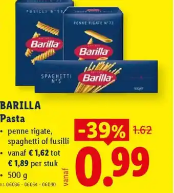 Lidl heeft een ruim assortiment naast de Barilla Pasta, houd elke week de Lidl folder in de gaten om de beste aanbiedingen en promoties te vinden. Naast Barilla Pasta in promotie kan u ook volgende aanbiedingen vinden: Barilla pasta of pesto, Barilla Pasta en sauzen & Pasta en sauzen Barilla.