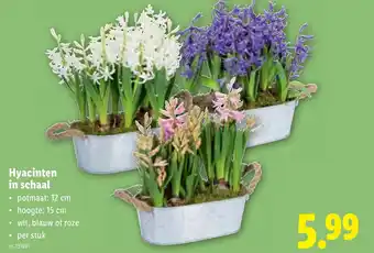 De prijs van Hyacinten in schaal kan u vinden bovenaan de pagina, waarbij ook de geldigheidsdata worden genoemd. Daarnaast is de prijs ook te vinden in de huidige Lidl folder of op de website van Lidl. U bent verzekerd van producten aan de laagste prijs bij Lidl als u artikelen in promotie koopt.