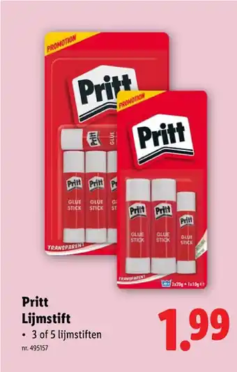Lidl heeft een ruim assortiment naast de Lijmstift, houd elke week de Lidl folder in de gaten om de beste aanbiedingen en promoties te vinden. Naast Lijmstift in promotie kan u ook volgende aanbiedingen vinden: Pritt Lijmstift, aanbieding 2 & aanbieding 3.