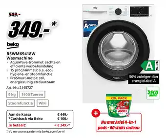 Nu in promo bij MediaMarkt: Beko B5WM69418W Wasmachine✅ Deze aanbieding is geldig van 17-04 t/m 26-04.