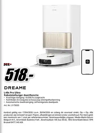 Nu in promo bij MediaMarkt: L40s Pro Ultra Robotstofzuiger dweilfunctie✅ Deze aanbieding is geldig van 17-04 t/m 26-04.
