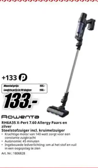 De prijs van Rowenta RH6A35 X-Pert 7.60 Allergy Paars en zilver Steelstofzuiger incl. kruimelzuiger kan u vinden bovenaan de pagina, waarbij ook de geldigheidsdata worden genoemd. Daarnaast is de prijs ook te vinden in de huidige MediaMarkt folder of op de website van MediaMarkt. U bent verzekerd van producten aan de laagste prijs bij MediaMarkt als u artikelen in promotie koopt.