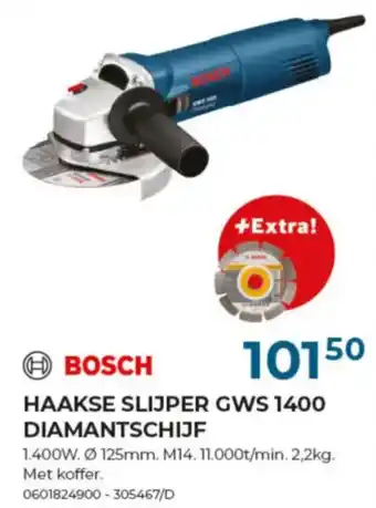 Bosch Haakse Slijper GWS 1400 Diamantschijf korting bij Meno Pro