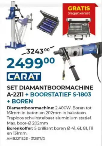 Carat Set Diamantboormachine A-2211+ Boorstatief S-1803 + Boren aanbieding bij Meno Pro