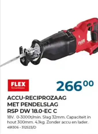 Flex Accu Reciprozaag met Pendelslag RSP DW 18.0-EC C aanbieding bij Meno Pro