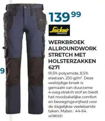 Snickers Werkbroek Allroundwork Stretch met Holsterzakken 6271 promo en online acties bij Meno Pro