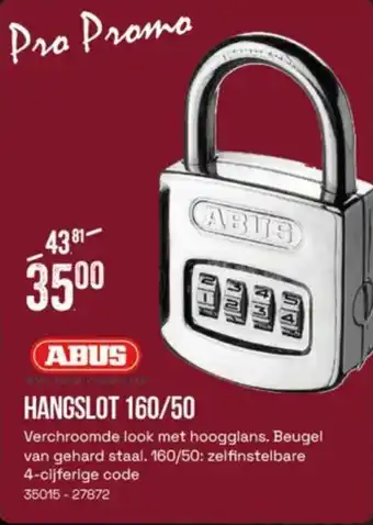 Het is goed dat u tussen de promoties zoekt naar het goedkoopste product dat u nodig hebt! Als u wil weten of Abus Hangslot 160/50 de hoogste korting heeft bij Meno kan u vergelijken op de Topic pagina of met andere winkels.